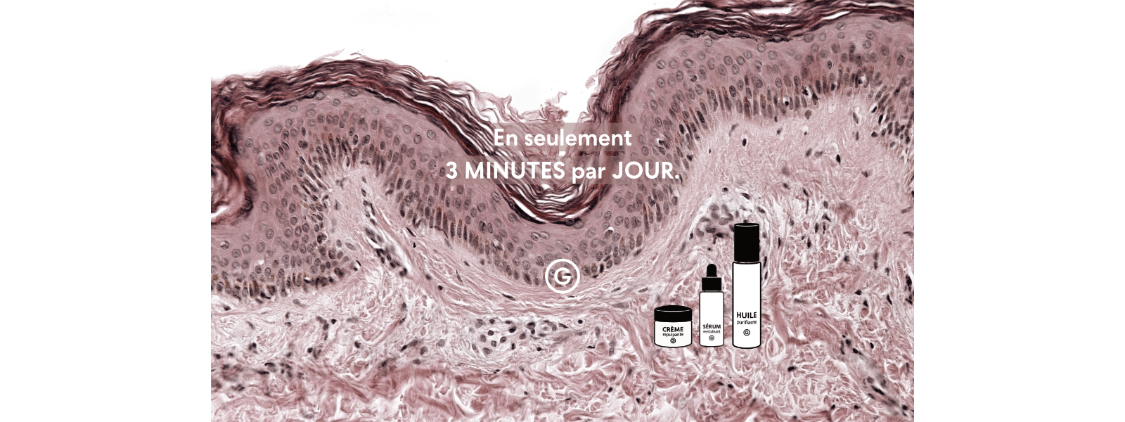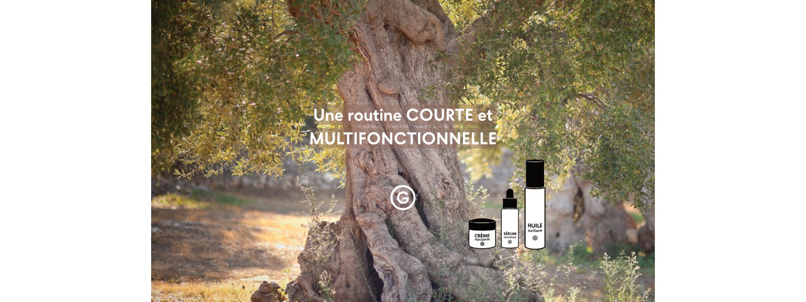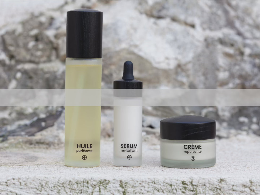 Cette approche globale permet de proposer une routine courte (moins de 3 mn/jour) et essentielle, composée de peu de produits tous multifonctionnels et complémentaires.